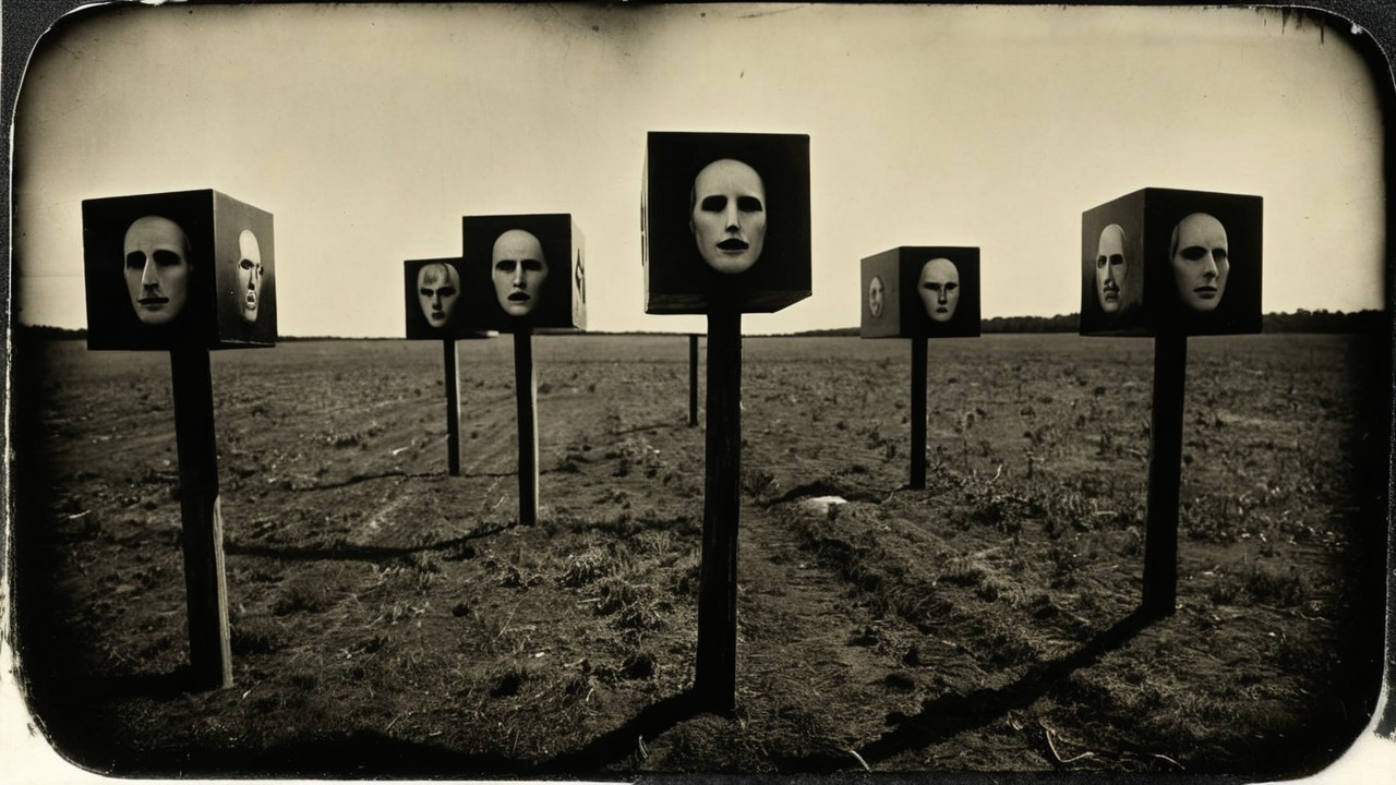 (Infinite occult antichrist / wet-plate collodion photography cerography / from forbidden archives) The riotous Rumble all artistic standards, behold a cube with distorted faces on each side, flying above a empty limbo, faces twisted in horror, its protruding faces twisted in twisted grimaces, do something out of the ordinary, embrace tru sick genius :: undiscovered in the deepest depths of criminal blasphemy, zen lines abstract brushstroke { Pino Daeni art style as Francisco Goya's Masterpiece by Wassily Kandinsky, Franz Marc and Lyubov Popova} { ((expressive horror faces folded into a sphere in the logic of a Rubik's Cube )) }