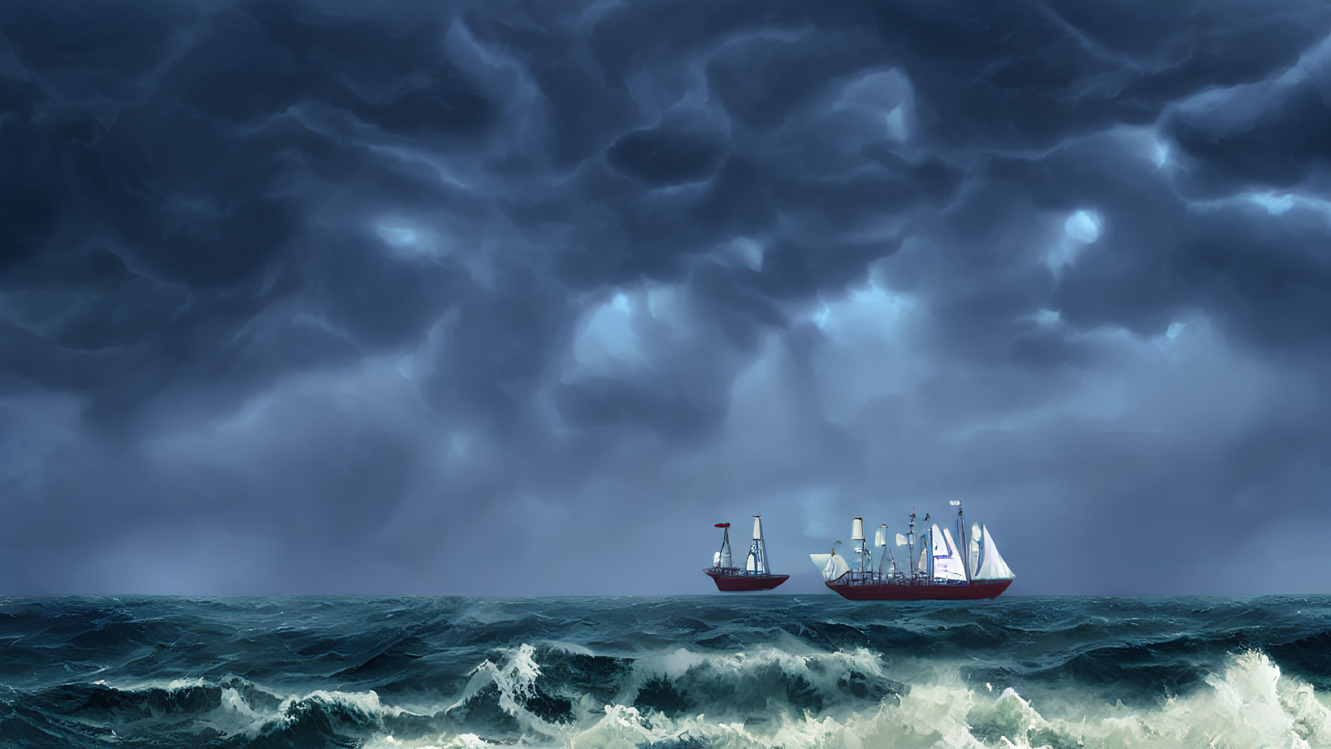 Stormy Ocean Scene: Ship Against Dark Sky & Heavy Rain