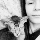 The image features two black cats in a minimalistic, artistic setting. One cat playfully leaps near a stylized tree, while the other watches, with a subtle lunar background enhancing the scene.