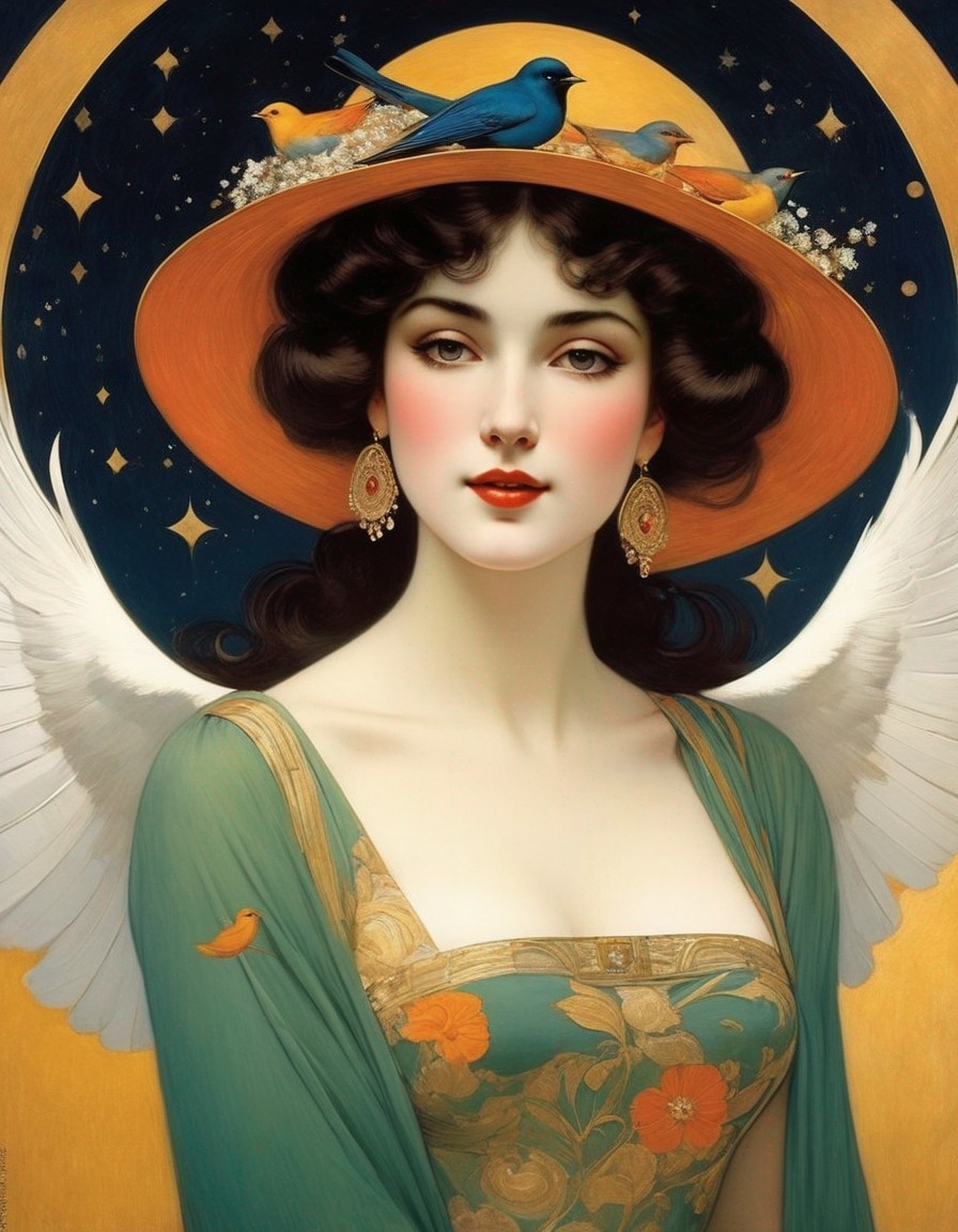 Prompt: by Leonetto Cappiello,Your laughter, a song of the morning birds, Your voice, a tale in whispered words. You are the secret the universe keeps,