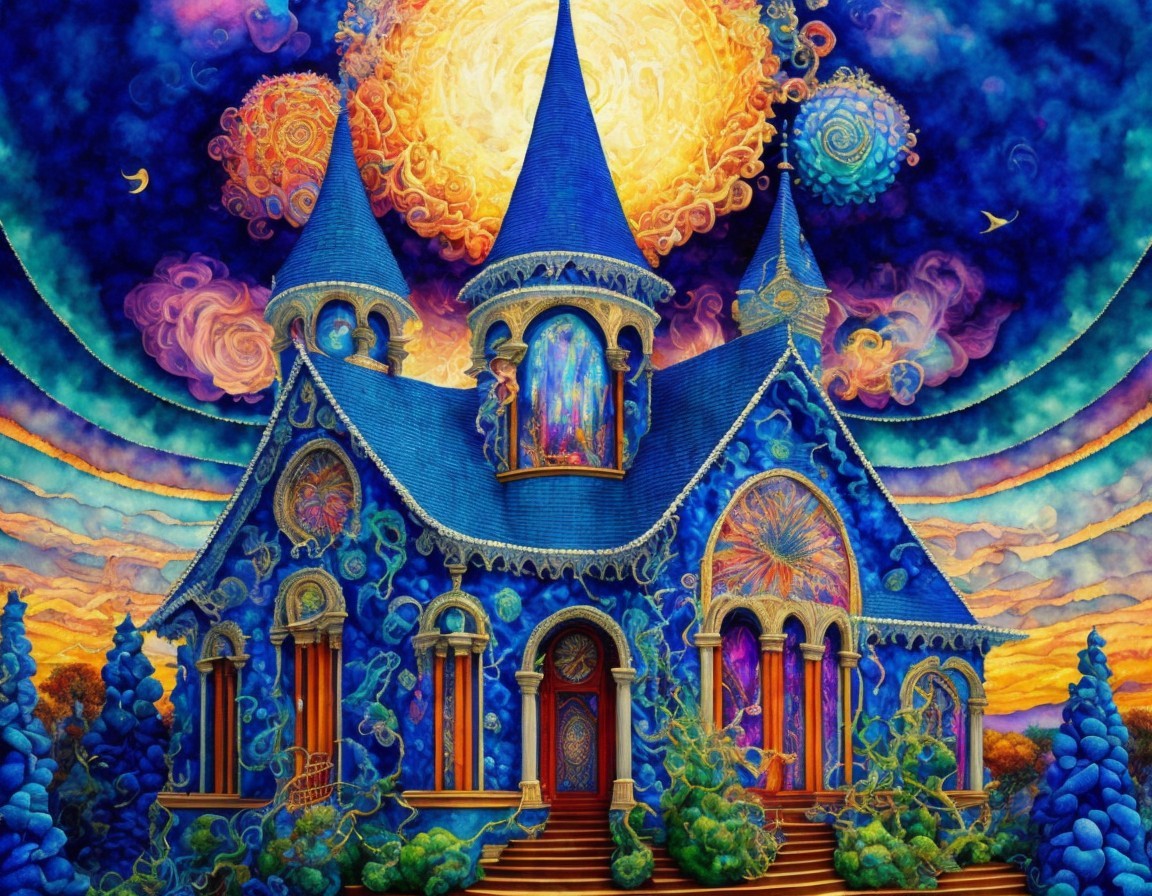 Prompt: Zentagle extreme effect, Church view with Variegated splashes of color, fantastical surrealist, elegant, storm clouds, beautiful high-definition acrylic art scene just before the thunderstorm, watercolor patchwork, by Daniel Merriam, Ivan Bilibin, Ernst Haeckel, Joe Fenton, Alphonse Mucha, Tending on Artstation,