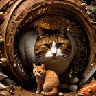 A charming group of cats of various breeds and colors, all with attentive expressions. They sit in multiple rows, showcasing their unique patterns and playful personalities against a warm backdrop.