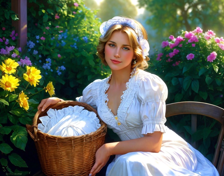 A woman sitting on a bench on the patio. I tried to have her quilting, doing embroidery, or sewing, but she just wanted to look pretty today. ☼
