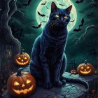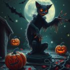 Black Cat and Jack-o'-Lanterns in Halloween Scene