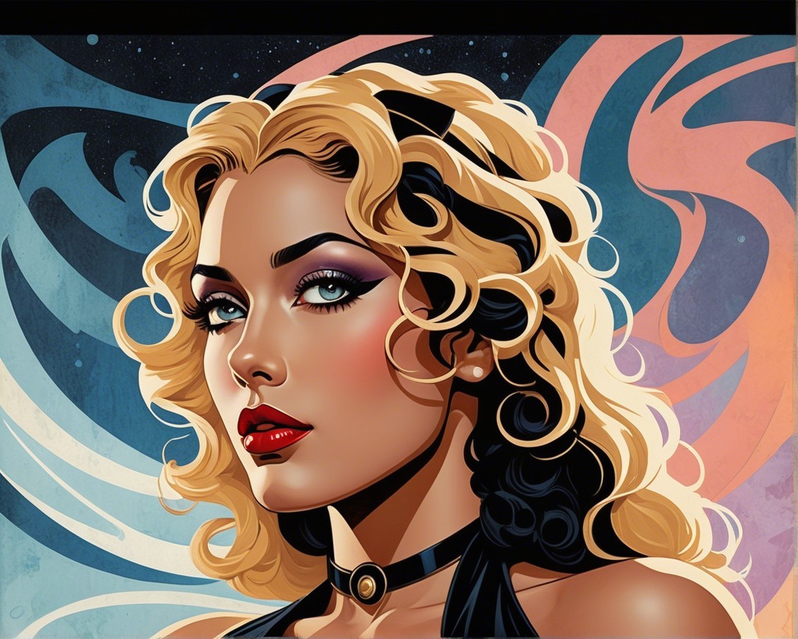+ Prompt:Stylized woodblock print, Comic book art merged with abstract art and collage illustration, reminiscent of logo design, Handsome serene temptress with devilish eyes and curly hair, romantic abstraction, Dark gothic ambiance, contouring lines of Dejah Thoris and patrick nagel, academical Style, Seductive, Sensual, eroticism, hues by Overton Loyd, line-art hairstyle with 3D texture brushlines; zentangle patterns, warm colours of orange black beige and red,.multi-layered style; cel-shaded, uhd, hdr, hues in pale blue and soft beige, tints in style by Georgia o'keffee, Overton Loyd, Jeannette Guichard-Bunel, Remedios Varo, overall composition in space age style, stacked-up perspective, detailed line drawing on old paper, hues in tiny lines, stacked lines, marvel comics art, style of Georgia O'Keefe, Jackson guice, Geof Darrow, harrison fisher, William Turner, Patrick Nagel and Overton Loyd, Art Nouveau details by barclay shaw, fauvistic, bold lineage illustration, wide angle, brass, grain, metallic details in lineage in black ink, fancy, moody, stylized modern collage illustration merged with abstract art, stylized lighting from top to centre, divisionism, small circles, grunge, anisotropic filtering 1.7, shadow mapping 1.3, minimalistic, simplified plasticity 1.3, beautiful marvel comic book character, orange to beige color palette, 1950s space age style by Curtis Cole, close-up, 3 layers of dof, traumacore 1.2, octane render illustration,, comic book art, overall stylized illustration by Chris Foss and Overton Lloyd, plasticity 1.3, octane render, uhd, hdr, high coloring, brightness 1.9, ambient occlusion 1.5,raytraced shadows 1.8