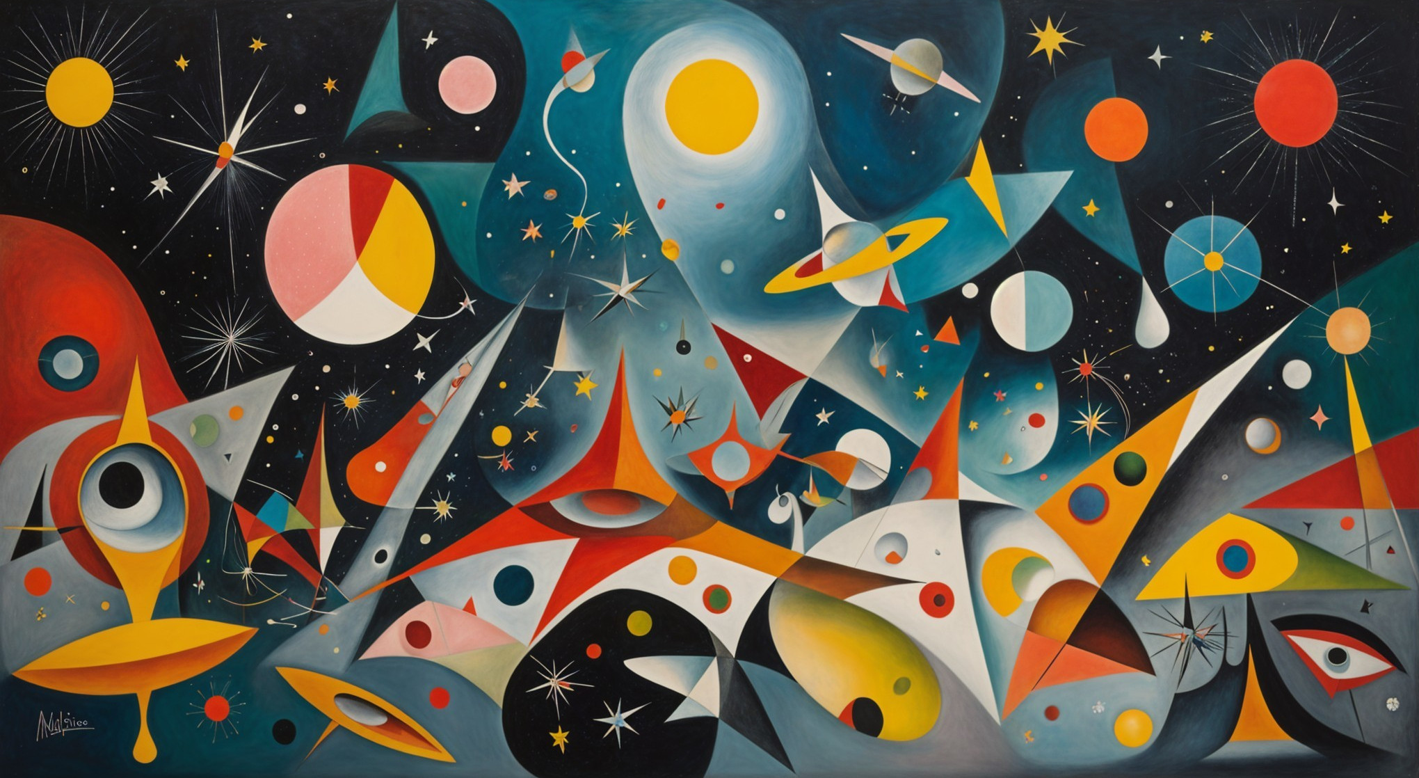 It is an homage to Roberto Matta, Joan Miró, Yves Tanguy, and Arshile Gorky
