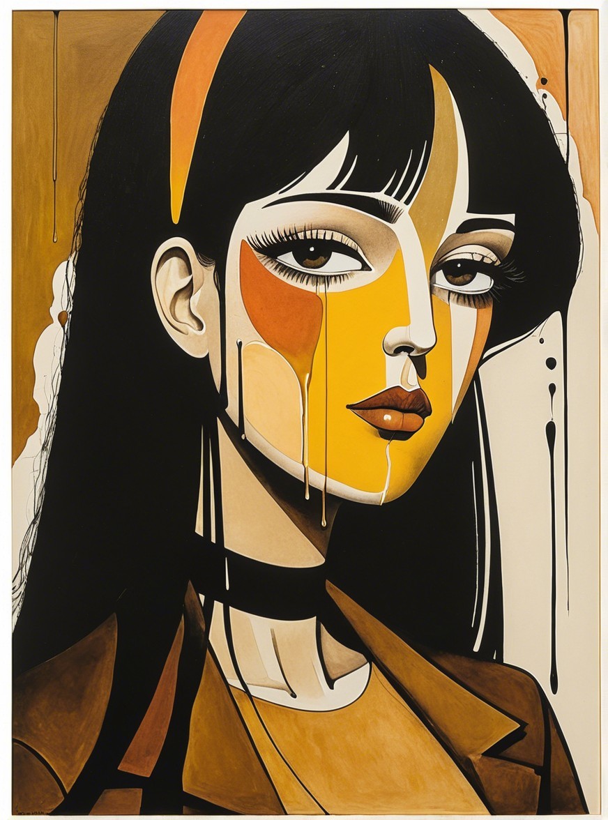 + Prompt:Wet on wet painting by saul steinberg and Hugo Pratt and Ho Baron, dark fantasy, tonalism, unparalleled detail, paper fibers, soft eroticism, splash ink technique in style of Marc Allante, colorful yam, warm coloring, earth tones, dark-yellow, metallic-honey, soft rounded edges, aquatint merged with aquarelle extrusion, detailed facial features, baked-milk-tones contoured by black ink, micro-pen lines, watercolor effects akin to adorable psychedelic art, Cartoon vintage details by Stan Lee, highly detailed stylized art merged with fantasy illustration, intricate stylized details for contouring lineage, crisp quality, liminal, sculpted, incredibly detailed, parallax occlusion, ray-traced shadows 1.2, plasticity 1.3, complexion 1.1, custom_loss:edge, only curves, zentangle method, dynamic lighting 1.7, softened lighting, otherworldly, original, great depth and scale in brightened tones, american gothic 1.7, dimmed lighting, low key lighting, divisionism, quilling, delicate coloring 1.3, sculpted, cel-shaded, easy, Arcane GTNR style, watercolor and ink style, patchwork, hdr, VFX-inspired, precise Gelsculpt 64K, novelty architecture, dethereal, chibli, layered paper texture, vibrant hues and peeling paint, softened reds, tranquil orange, goldenrut-yellow, highly emotional, 3 layers of dof, coherent line-art features, multi-layered eyes, surreal gaze, serenity, joyful, gradient inking watercolors, asymmentrical geometric lines, line-art, HD quality, reminiscent of 1970s european comic book art, brightness 1.9, fusion of geometrical styles with elements of foampunk, detailed line art to create a whimsical and psychedelic ambiance, traumacore with hatching details and a soft, ethereal atmosphere, American Gothic merged with comic book art. american gothic with a triadic color scheme of light-yellow, burnt orange, and sienna in intricate patterns and textures, stippled shadow effects, visible textures, creating a coherent line-artwork by david graeme Baker and Marc Allante,