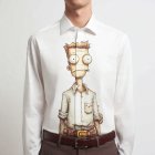 White Long-Sleeve Shirt with Guy Fawkes Graphic Design