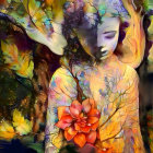 The image features a vibrant, abstract portrait of a face, blending bold colors and fluid shapes. The eyes are striking, surrounded by a mix of patterns and organic forms, creating a lively expression.