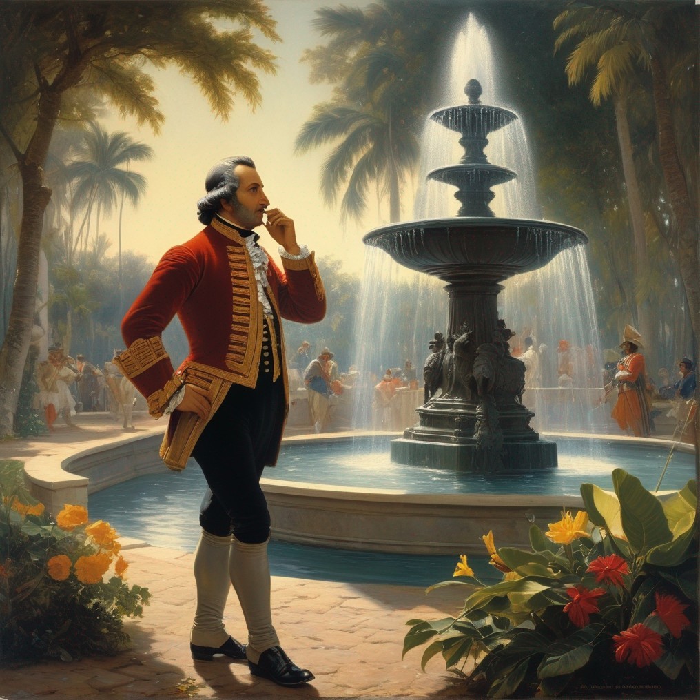 Ponce de Leon thinks he has found the fountain of youth and is contemplating getting a little wet. ☺