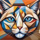 A colorful, abstract illustration of a French Bulldog features bold geometric shapes and vibrant hues, capturing the dog's expressive eyes and distinctive facial features in a modern style.