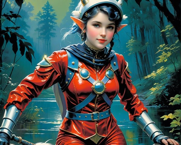 A surreal figure with animal features wears a vibrant robe, adorned with a skull and intricate jewelry. Accompanied by fantastical creatures, it blends elements of fantasy and detail.