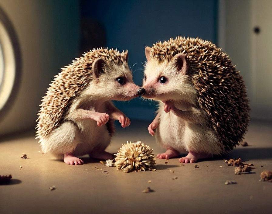 Hedgehogs on Wooden Surface with Warm Light and Spoon