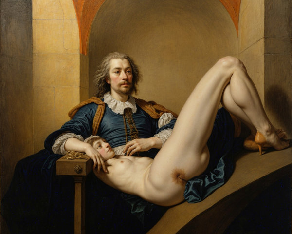 The surreal painting depicts a bedroom with melting walls, where a boy examines a drawer and a girl sits nearby, surrounded by artwork and drip-like textures, creating an ethereal atmosphere.