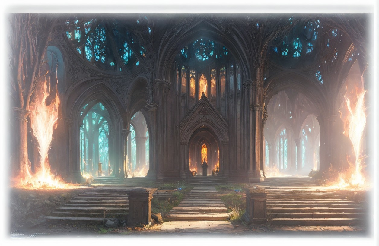Gothic Cathedral Interior with Ethereal Light and Arches