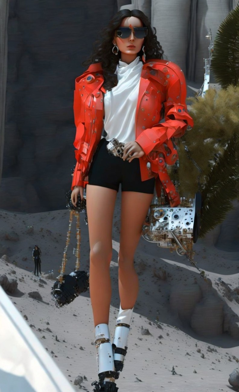 + Prompt:Barely clothed android on excursion in a martian desert. Detailed industrial blueprint style, golden ratio, technical, precise, electronics and biomechanics, scheme. Style Jean Tinguely, Hans Bellmer, Picasso