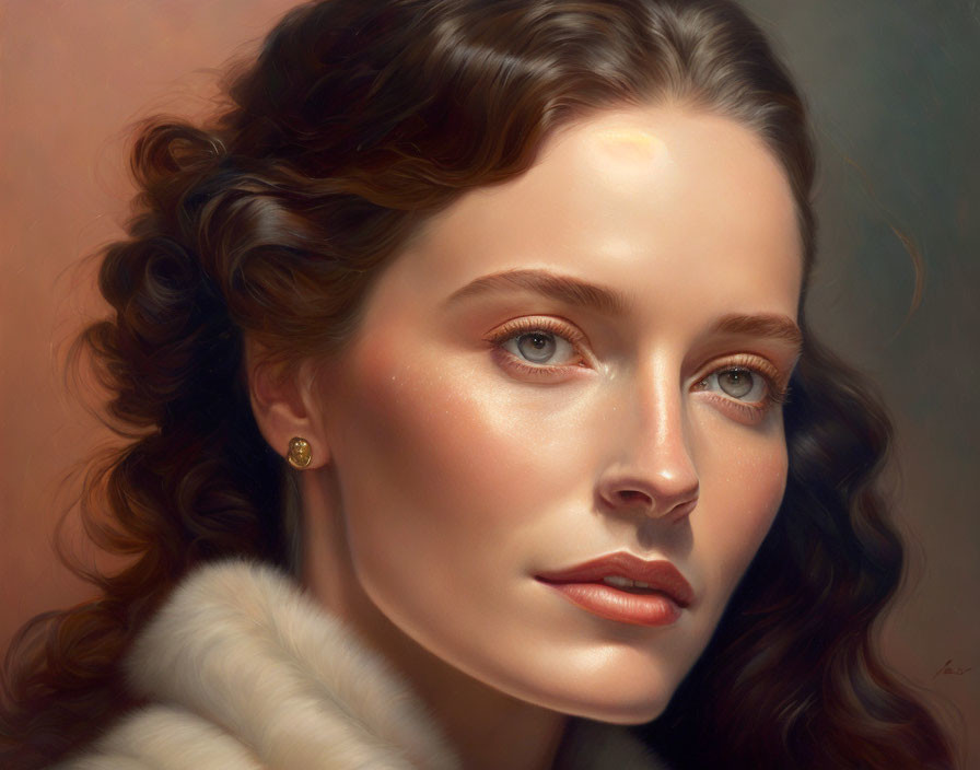 Digital artwork: Woman with multicolored crystal patterns, wavy hair, serene expression
