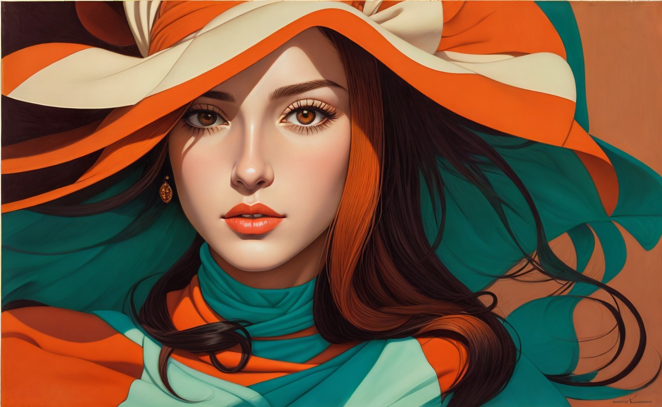Woodblock print, stylized Portraiture, beautiful teenage temptress, close-up headshot in orange and turquoise tones, hues, style By Tim Burton, Lucien Hector Monod, Guido of Siena, Carlo Crivelli, Meghan Duncanson, Jennifer Lommers, Margaret Keane, american gothic 1.7, tints of 1970s advertising art, divisionism, digital artwork with hues, traumacore 1.9, instaport style, concept art, triadic color scheme blue orange turquoise, high coloring 1.9, folded paper style 1.6, encaustic streaks, synthetic, soft edges, devilish eyes 1.7, brightness 1.4, 3d effects 1.9, ambient occlusion 1.5, anisotropic filtering 1.2, raytraced shadows 1.8, dimmed lighting 1.9, high coloring 1.4, chiaroscuro, hues, cottagegore 1.3, american gothic 1.7, octane render illustration 1.5, traumacore, plasticity 1.9, dark fantasy atmosphere, tints of bob Eggleton and Margaret Keane, synthetic essence, tints of comic book art, stylized illustration with 3d lineage, cel-shaded, radiance, maximalism, illustrative science fiction art, Streamline_Moderne, dynamic lighting 1.7, intricate lineage with rim lighting, grain, golden ratio, close-up portraiture in warm tones, brightness 1.4, ambient occlusion 1.5, raytraced shadows 1.8, synthetic, tints of space age style, Streamline_Moderne, beautiful composition 1.9, geometrical lineage illustration cartoon style in Colors of pink orange red, pale orange and yellow, (((background as pencil drawing of Quaint line-art with charming patterns by Arthur Rackham, Jean-Baptiste Monge, Shabby Chic, wavery