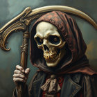 Skeletal Figure in Dark Cloak with Menacing Scythe