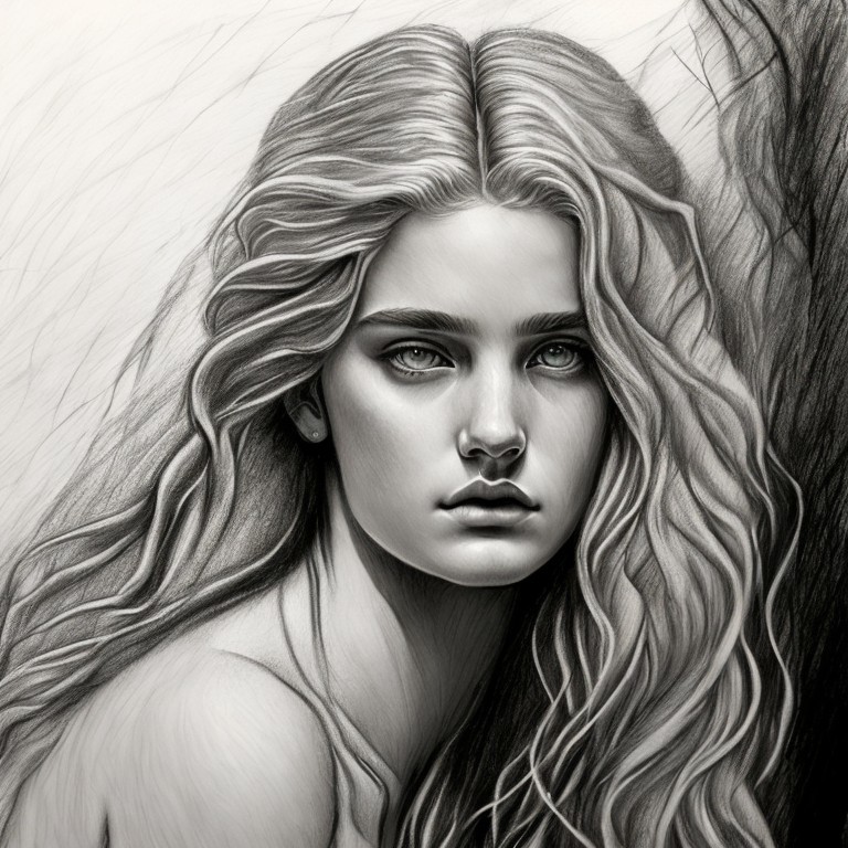 This creation happened and it ended up a nice little piece of a pencil sketch female and cant tell hair or eye color but she gives off sadness to me