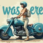 Prompt: full image portrait pinup of a cybernetic woman on a mech hover machine holding the handle bars, in front of a dirt graffiti background. Vintage Alberto Vargas pulp art aesthetic with oil paint textures. Hyper-realistic, ultra-high pixel precision, 4K resolution, sharp focus, detailed textures, intricate circuitry fused with organic elements like gleaming metal and lifelike flesh, delicate veins. A masterpiece balancing man, machine, futuristic, and organic