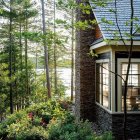 A rustic house and garden in Maine. A fine ink lines, stylized detailed style of Charles Rennie Mackintosh, John Salminen, Cressida Campbell.