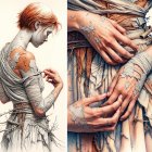 A young woman stands confidently, draped in a soft, neutral-toned fabric. Her expression is serene, and the background is minimalistic, enhancing the focus on her graceful pose.