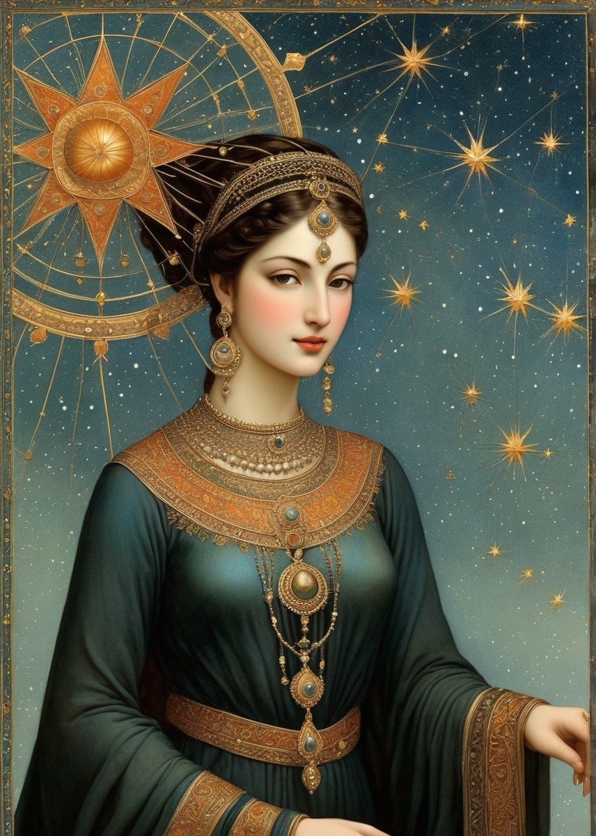 + Prompt:Celestial star catcher Nymph. Celestial melodies weave through the night, a symphony of art and beauty. 3rd century Persian miniature art, umber, sage green, pearl grey, paprika, blue-grey, Velvet Black, Shabby, Dull Gold, Amber Gray, Golden Ratio, Surreal Fantasy, Elegant, High Definition Ultra Fine 3D Line, Zenangle Style, Watercolor Patchwork , Arthur Rackham Style, Extremely Detailed, Intricate, Thoughtful, HDR, Fractal, Beautiful, Award Winning, Fantasy Look, Fantasy, Crisp Quality