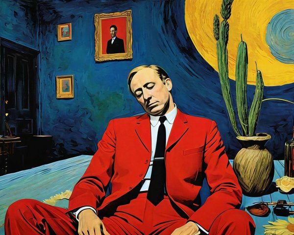 A brightly lit room features warm orange walls and a single white plastic chair. Light casts a shadow on the floor, creating a cozy, inviting atmosphere with a touch of minimalist decor.