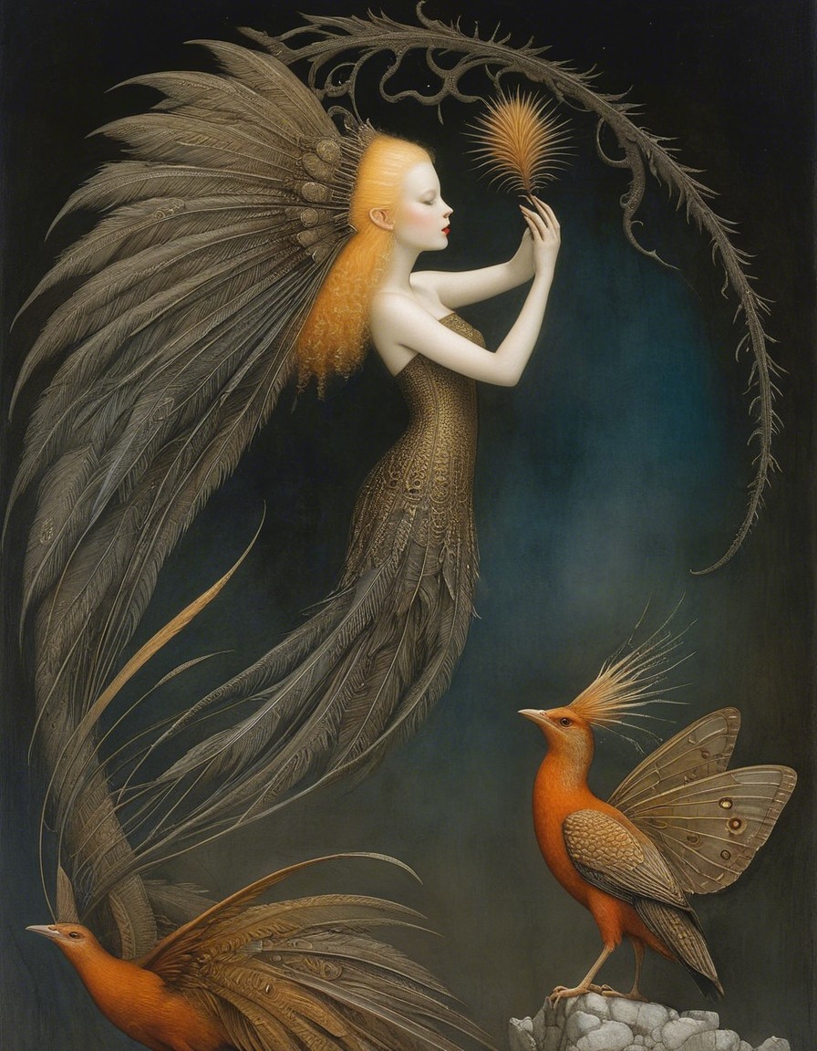 + Prompt:Close up, adorable H.R. Giger white-faced creature in the labyrinth, by Catrin Welz-Stein, Michael Parkes 3d, extremely detailed, beautiful, watercolor and ink, mixed media, Best quality, Very high definition, super clear resolution, cinematic, intricate, fantastic view, beautiful, dynamic lighting, high definition, hdr *Random prompt award winning Max Ernst ultra detailed, 4K 3D, Texture