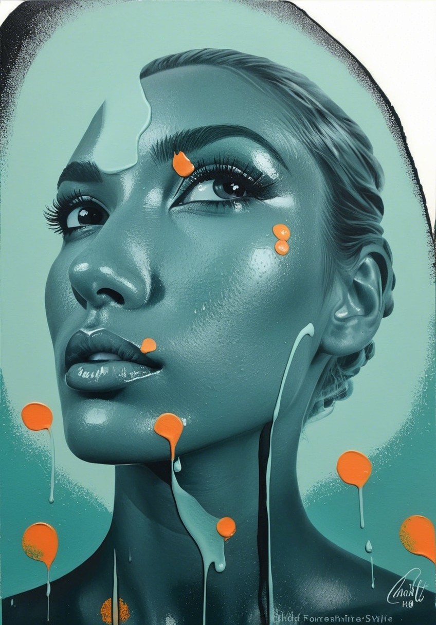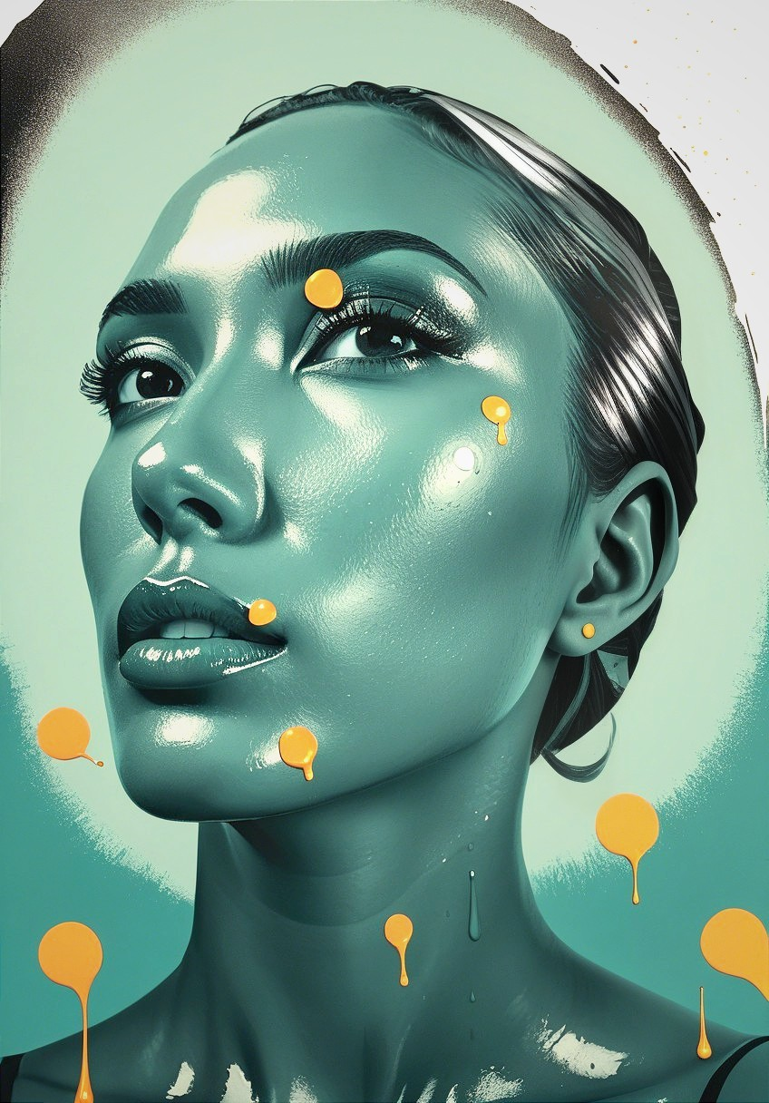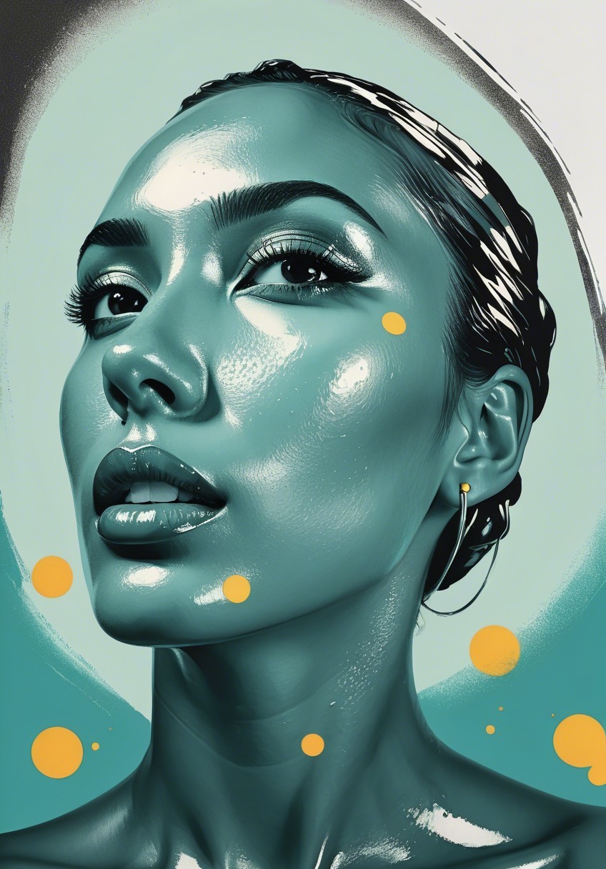 Vibrant, stylized, linework portrait, pop-art female portrait, angled view, estranged perspective, vector 9:5, subsurface scattering 1.3, dramatic approach, sensational, chiaroscuro lighting, glossy, oily, visible brushstrokes, glazing effects, bold mood, stylized abstract interpretation, wet-on-wet watercolor style, halftone textures for depth, dappled and dynamic illumination, oil and ink medium on textured canvas, intricate high-detail painterly strokes, distorted anatomy for artistic flair, dripping details adding depth, intricate linework, rich textures, warm palette of starfleet-blue, dark-pink, dark-blue, warm bluish inking, light blue color gradients, dark blue, natural lighting with soft shadows, artistically composed. sculpted, flowing hair illusion, ethereal atmosphere, fabric, luminism, plasticity 1.6, dynamic lighting effects by Sam Toft, J. E. H. MacDonald, spatialism, simplistic, Beyonce-lookalike, juvenile, indiecore, pen and ink style, warm coloring, handsome sketch art by Susanne Mason and Ho Baron, stylized crowd in background, silhouettes in multi-perspective, plasticity 1.3, hues by Ho Baron, gradients, subsurface scattering 1.3, warm tones, brightness 1.3, back-lit, triadic color scheme brown light-beige ochre, dyed, enlightened, brightness 1.3, opaque, translucent, stylized female, slightly angled side view, close up, transpositional invisible aperture, 1970s comic art heroine, 3d effects, casted shadowsvivid spectral color palette, gradient inking colors in red and yellow coloring, warm, neural chaos elements, glitchcore textures for a modern twist, emotive chiaroscuro, expressionistic pop-art, cel-shaded female portrait, bold and abstract line-art, halftone textures, dappled illumination, reflections, rim lighting, parallax occlusion 1.3, angled view & visible textures, bokeh, --ar 1:1 --q 2 --s 750, brightened color palette, pointilism, ethereal atmosphere, layers of fabric blend with turbulent flares, liminal hues by Ho Baron and Man Ray, lighting by Ed Paschke, wavery, pellucid details, juminocore elements, grunge aesthetic, fusion art concept, precise warped reflections, luminous elements, fabric textures, and plasticity, dynamic lighting effects for depth, and hues inspired by Brad Kunkle.