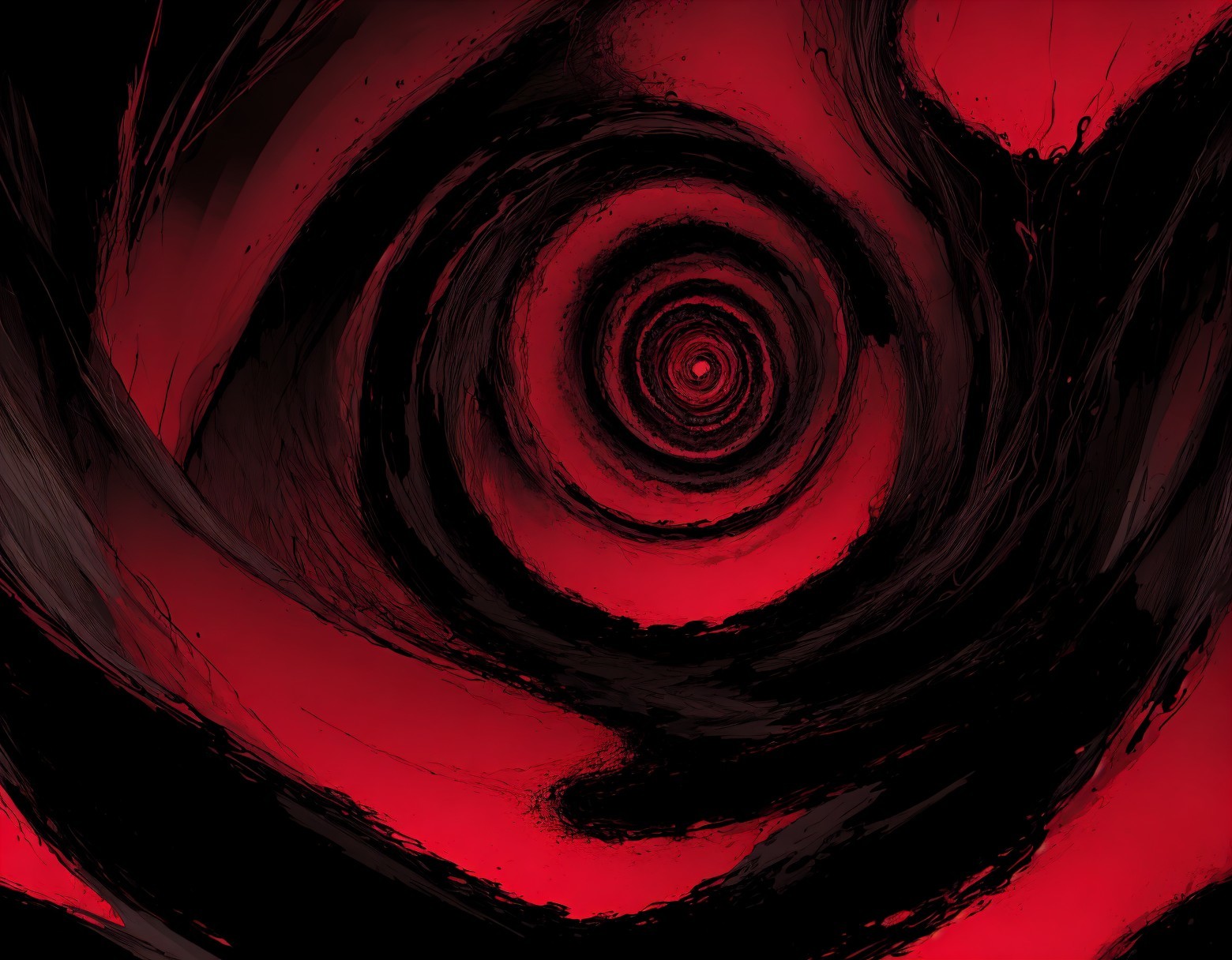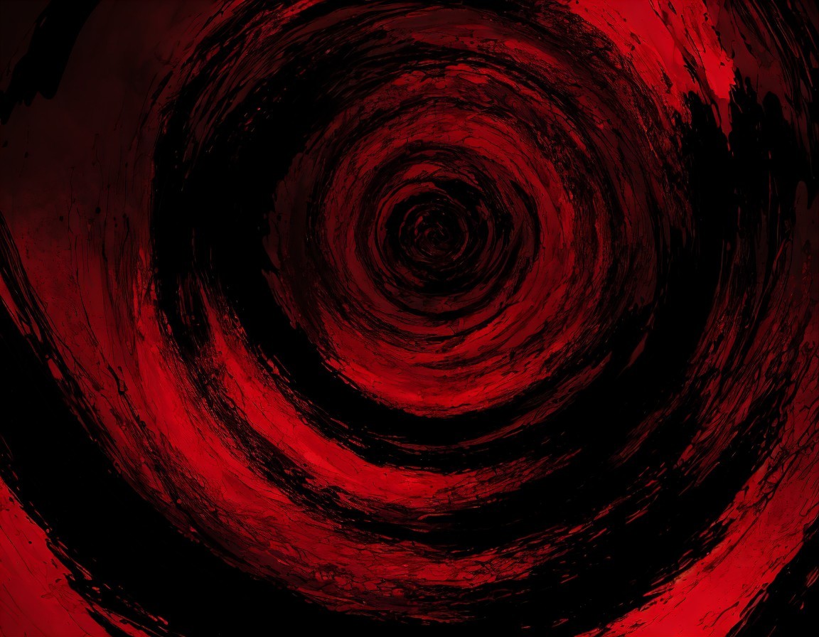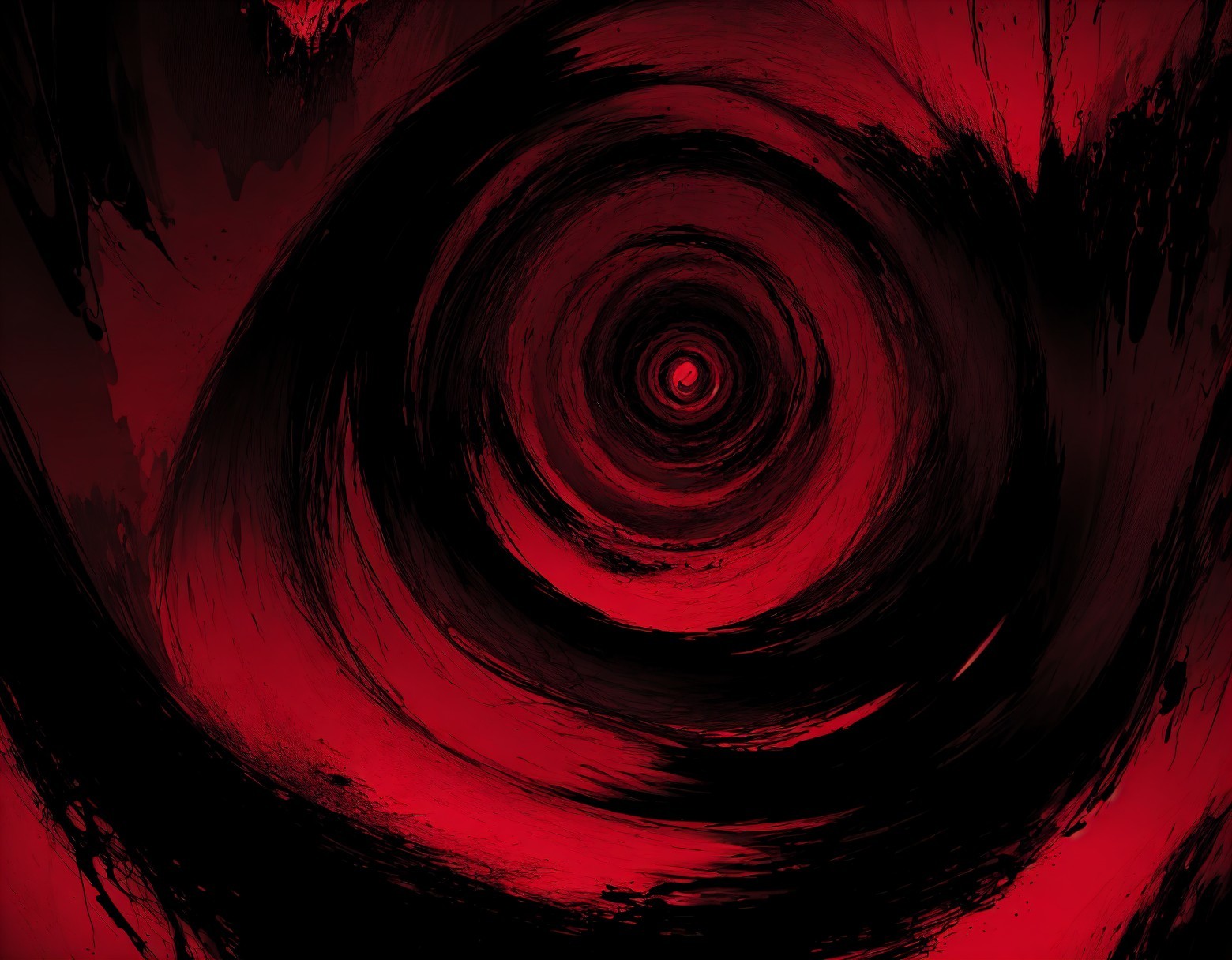Abstract swirling pattern with concentric circles in red and black, creating a hypnotic, vortex-like appearance.