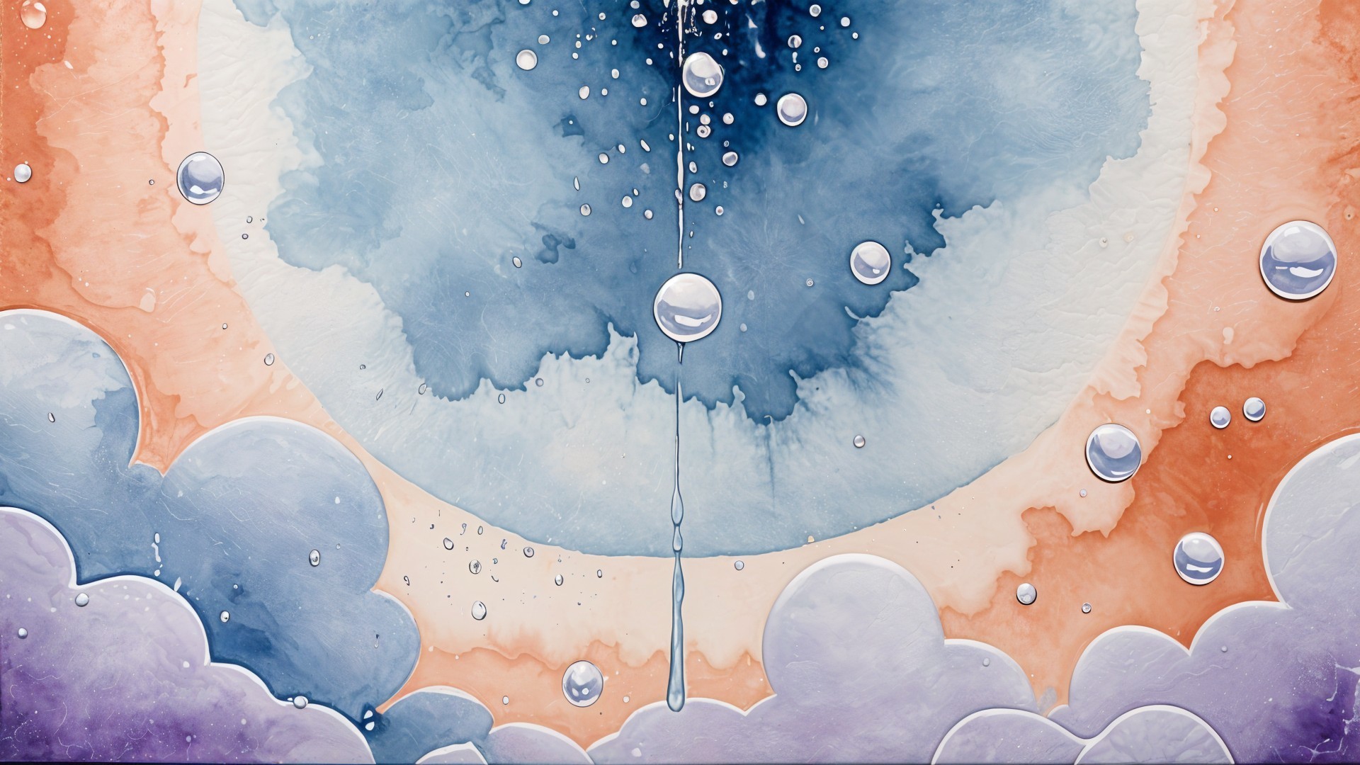 A vibrant watercolor landscape featuring majestic mountains, blending warm and cool colors. Transparent bubbles float amid an atmospheric sky, creating a dreamlike, ethereal scene.
