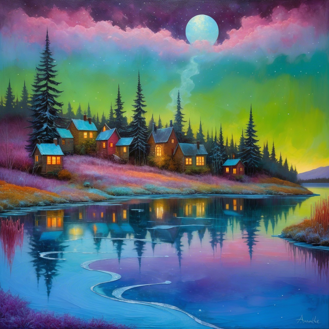 More about Cottages by the Lake Under a Vibrant Sky