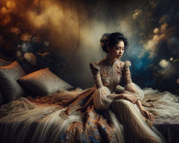 A hauntingly elegant skeleton cloaked in darkness, rendered in intricate detail. The artwork blends fantasy elements with cinematic lighting, evoking a sense of mystery and allure in oil on canvas.
