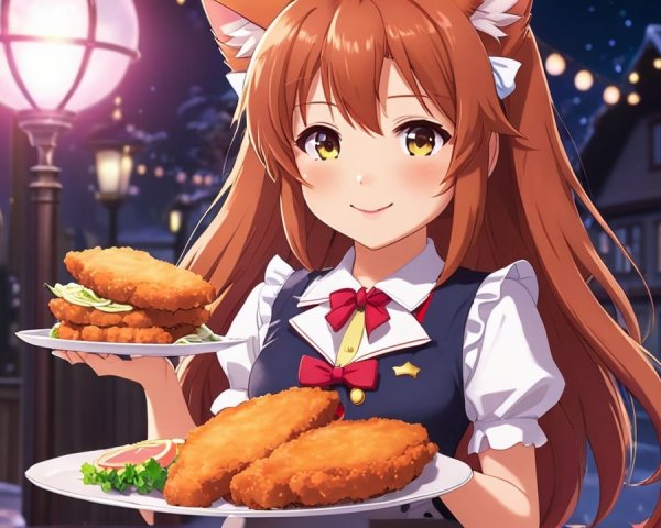 A whimsical anime catgirl embarks on a colorful adventure, using her magical abilities to construct a charming house filled with enchanting details and vibrant surroundings.