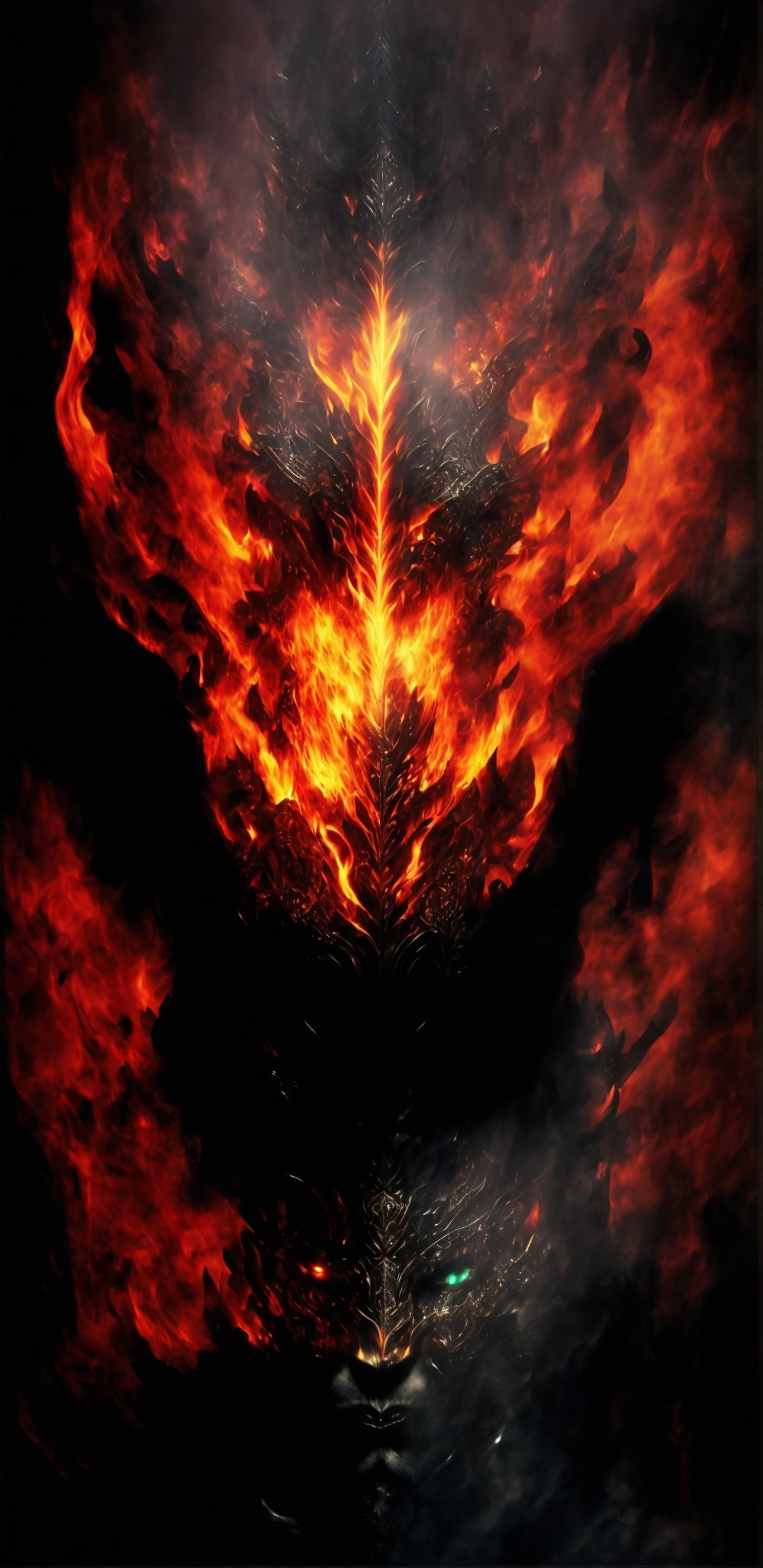 lines, prestige and power, obsession drags you downward, ferocity, every reflective glance tears you apart, forecoming Ek Balam infernal inquisitor jaguar god serpent demon elite of warriors and kings night sun and darkness rulers of the Xibalbá look into the dark parts of the human heart rage and violence obsidian mirror emanating smoke night wind invisible darkness, lord of the night who owns what surrounds flow of blood hurricanes enflamed with anger dust devils whirlpool elemental forces