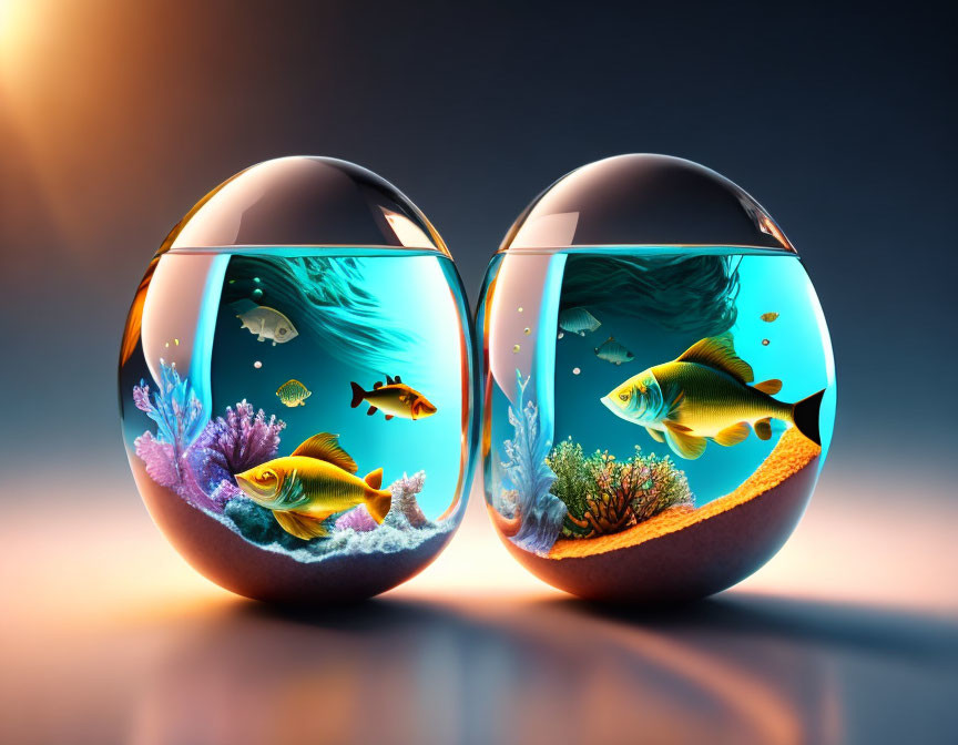 Drawing of two separate oval fishbowls sitting on a table based on the song Wish You Were Here by Pink Floyd: "We're just two lost souls swimming in a fish bowl year after year."