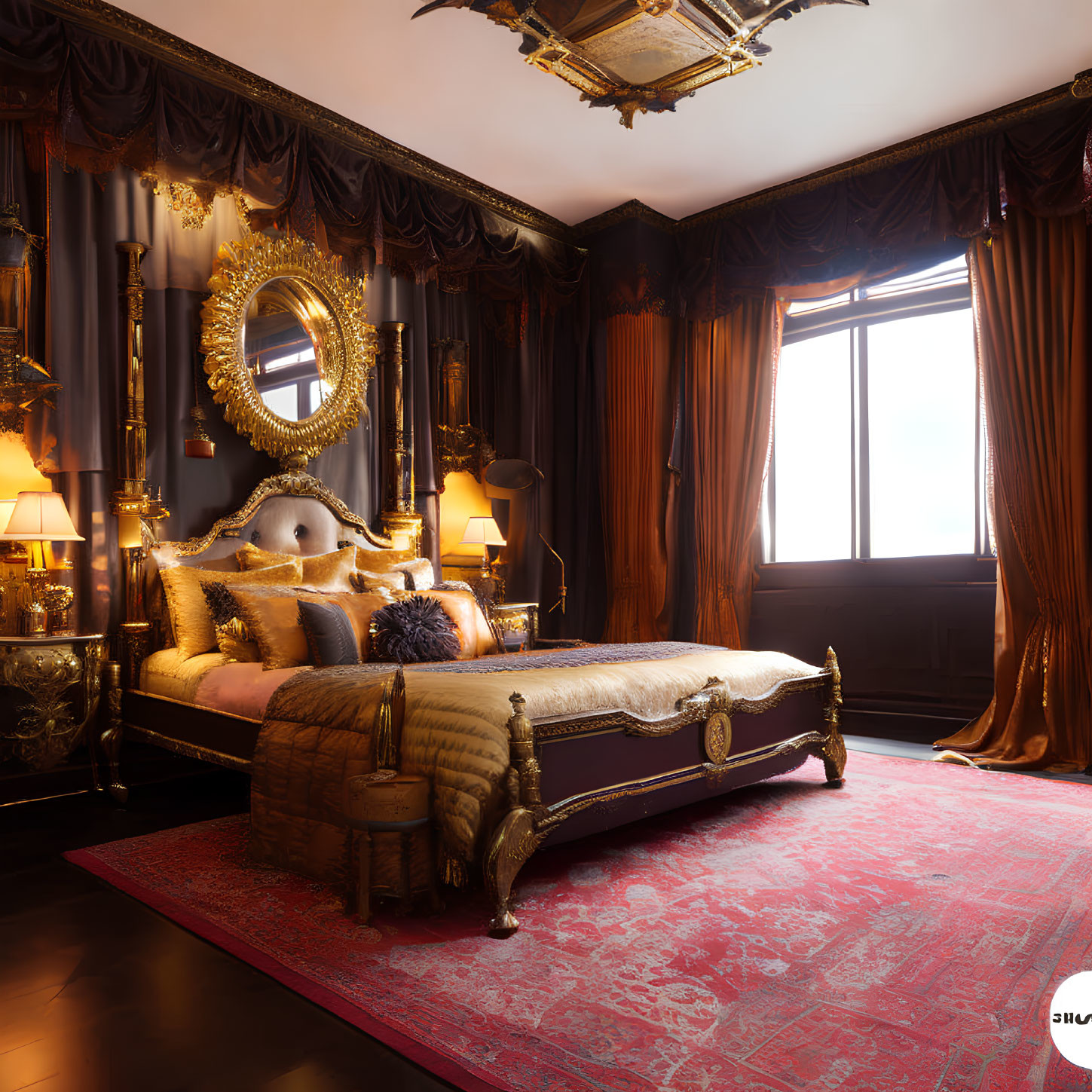 Luxurious Bedroom with Gold Accents and Ambient Lighting