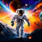 A vibrant landscape features a colorful sky with a large moon, a charming house along a stone path, flanked by lush fields and blooming flowers, creating a serene and enchanting scene.