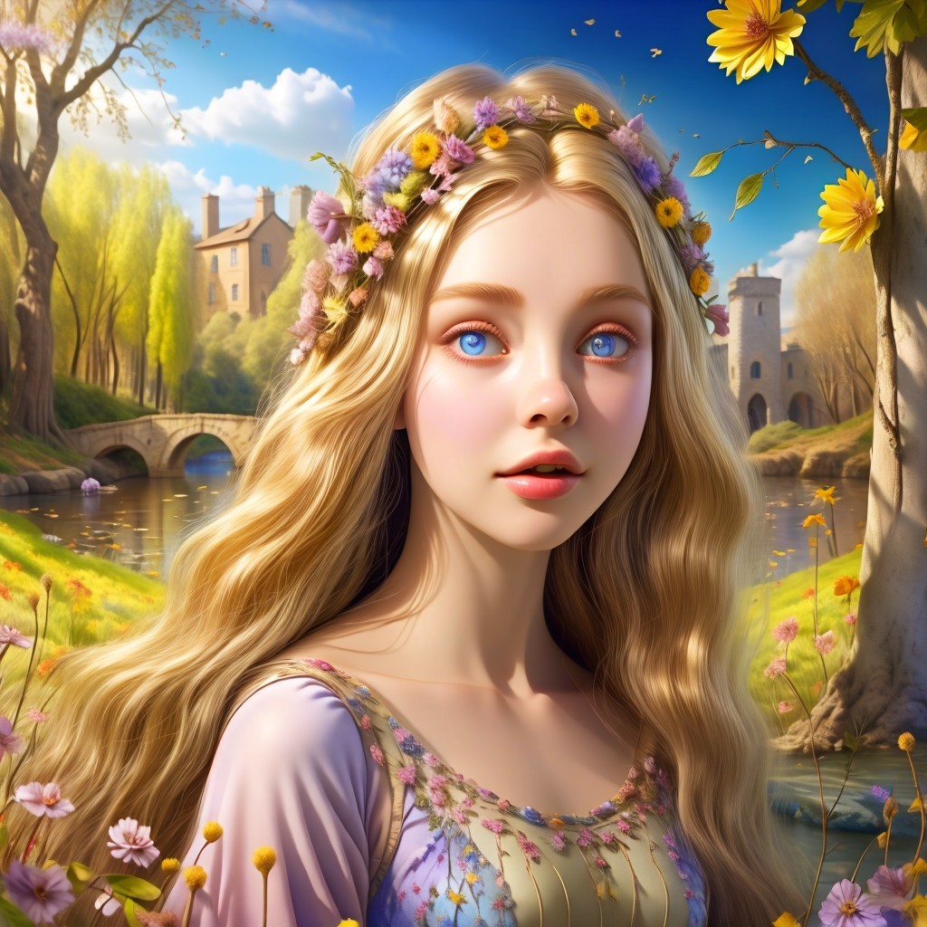 Autumn landscape in a patchwork of watercolor and ink, inspired by Jamie Heiden, Walter Crane, Daniel Merriam, Ivan Shiskin, and John Atkinson Grimshaw. Picture a serene river flowing gently under an ancient stone bridge, surrounded by quaint houses with smoking brick chimneys, picket fences, old olive trees, and majestic birch trees. Adorned with withered cattails, Queen Anne's lace, and grey-green grasses, the scene is set against mist-shrouded mountains. Utilize Indian yellow, stark red, various greens, earthy tones, and burgundy to bring out the colors. The background features a soft-focus sunset sky, enhancing the fantastical and surreal feel. Ensure the artwork is ultra-detailed, elegant, and intricate, resembling fine 3D line art. Embrace warm lighting to create a dynamic and ethereal atmosphere. Include elements of zentangle artistry for a unique touch. Consider the styles of John Philip Falter, Alexander Archipenko, and Fer © for additional inspiration. Craft a scene that is highly detailed, cinematic, and award-winning in quality, rich in colors, and exuding an attractive, cute, and fantastic view.