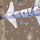 The image depicts a sleek rocket soaring through space, surrounded by a backdrop of stars. A spacecraft appears to be navigating nearby, creating a sense of exploration and adventure.
