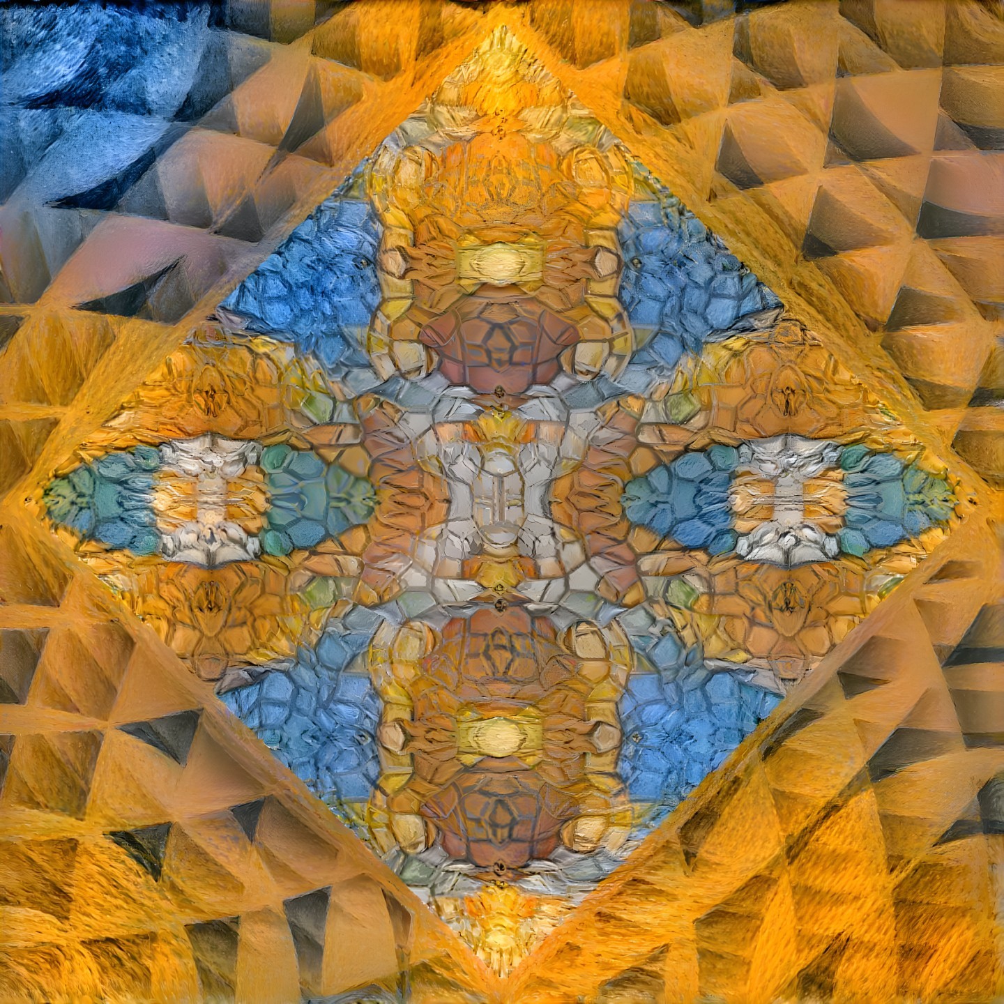 A surreal, vibrant face depicts exaggerated features with large, expressive eyes and swirling colors. The background features cosmic elements, creating a dreamlike and otherworldly atmosphere.