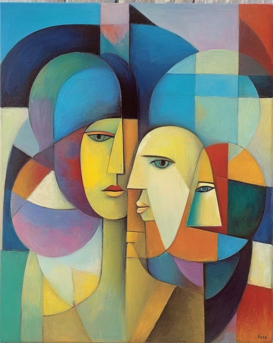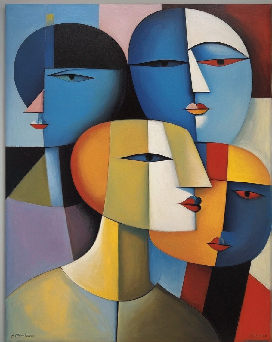 + Prompt:If we put our heads together, we can figure it out. A cubist, abstract oil painting in the style of Picasso, Mondrian, Henri Matisse, Paul Klee.