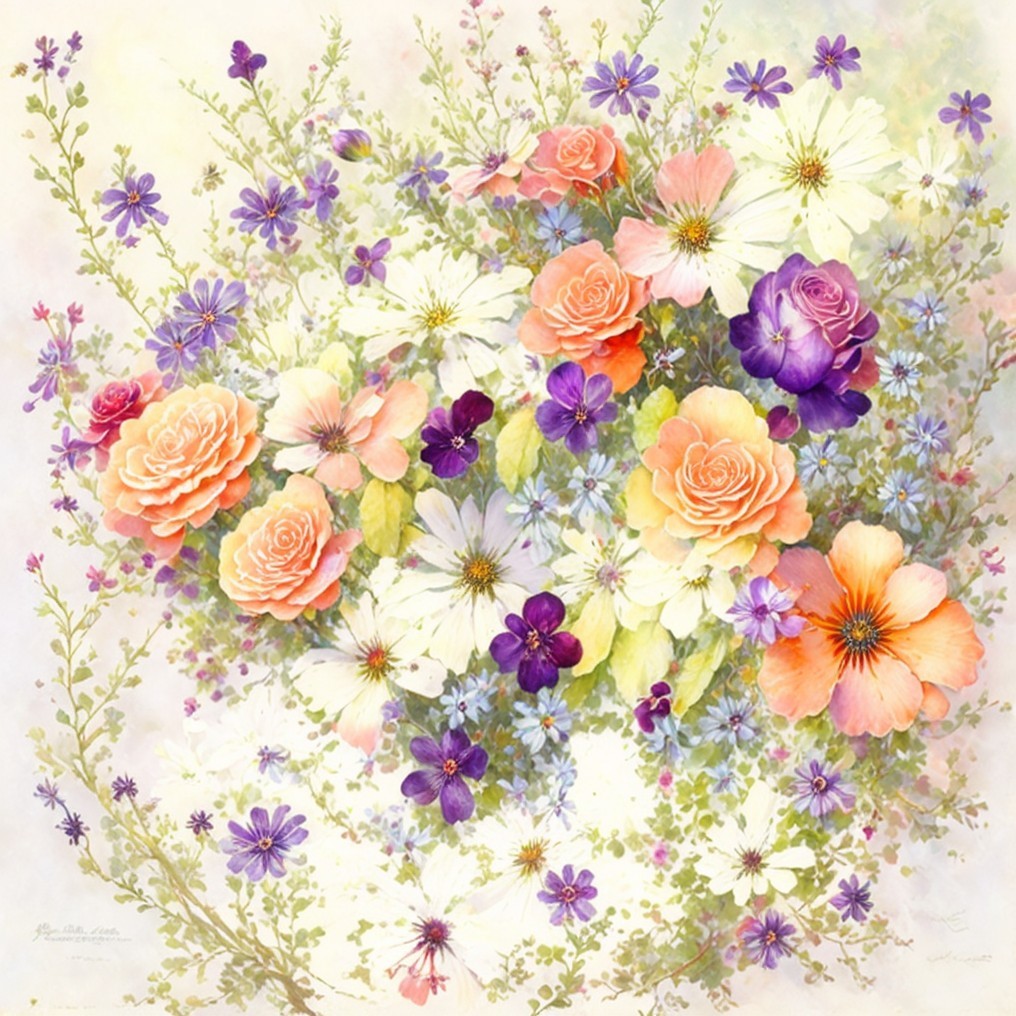 + Prompt:Abandoned old open bible with gold edged pages in a thicket of sun-drenched multicolored ombré roses, deep red purple bleeding-heart flowers, peach baby’s breath, daisies, osteospermum flowers, vines and roots, by Jean-Baptiste Monge, wet on wet watercolor and ink, intricate details, fantasy, beautiful, award winning, colorful, fantastic view, crisp quality, bookmark made from pearls, leather cover, peach to yellow multicolored roses