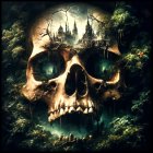 Detailed Skull and Ancient Castle in Mystical Landscape
