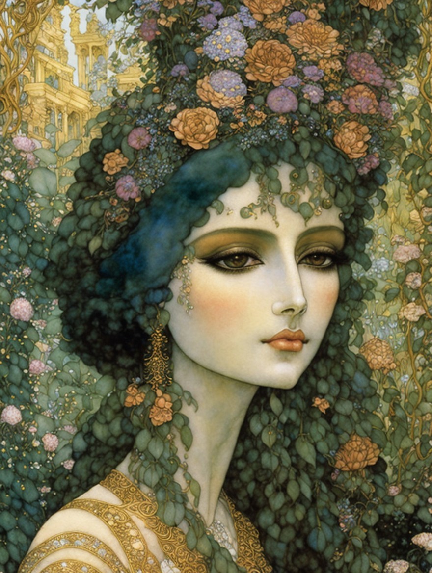 A gorgeous nymph of ancient cities. Lush gardens and flowers. Evening light.