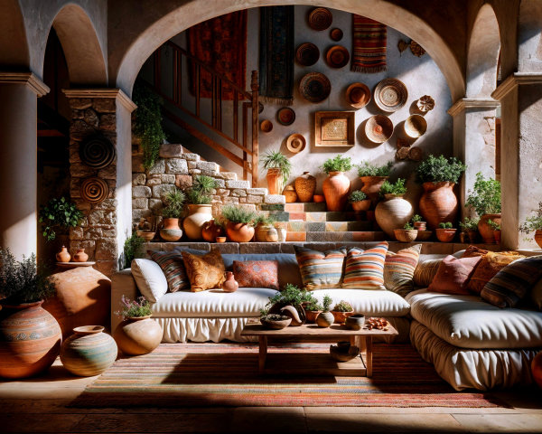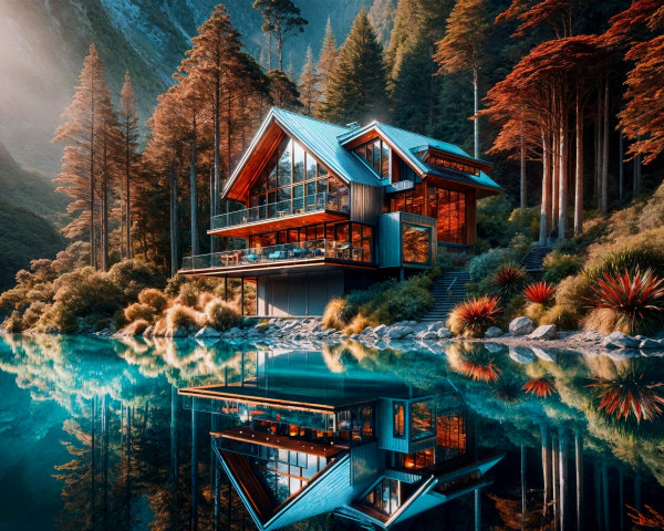 A vibrant painting featuring bright orange flowers amidst delicate blue blooms, set against a rich, abstract backdrop of greens and soft light, evoking a lively spring atmosphere.