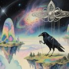 A vibrant, fantastical scene showcases a lone rider on horseback against a backdrop of colorful explosions and a majestic castle. The artwork blends surrealism with dramatic, bold colors.