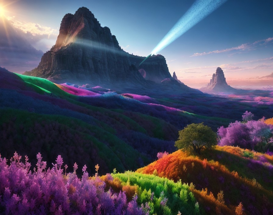 Prompt: "Rays of setting sun crystallized in a cubicles of an air of breathtaking psychedelic landscape, merging hyperrealism and fantasy, complex, diverse, and extremely detailed."